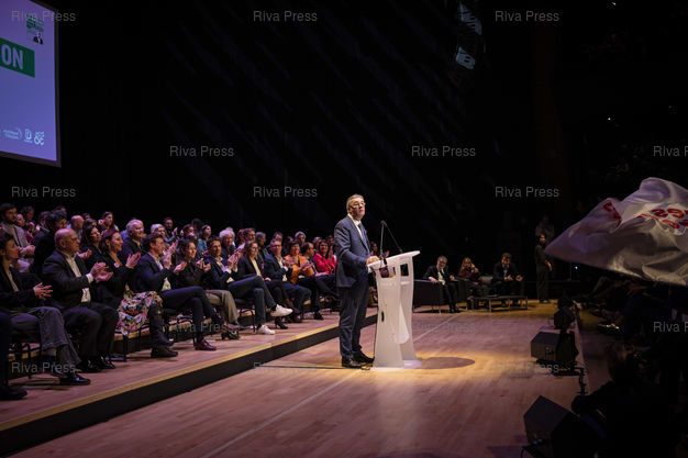 *** Toulouse, March 11, 2026 - Meeting of François Briançon (C), member of the Socialist Party who is leading the "Live better" list of the united left without LFI in Toulouse for the municipal elections of March 2026. Photo: Vincent Nguyen / Riva Press
