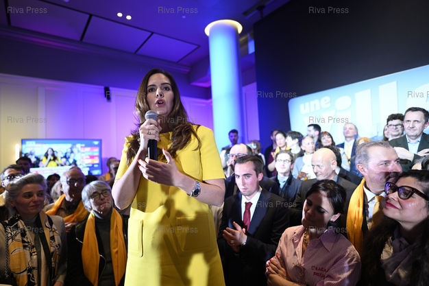 Légende : Soirée électorale du 1er tour des élections municipales autour de Sarah Knafo, candidate de Reconquete à la mairie de Paris /// Election evening for the first round of the municipal elections, with Sarah Knafo, candidate of the far-right Reconbquete party for mayor of Paris - Paris - 15/03/2026 - Photo © Lionel Préau +33 (0)6 68 12 83 77