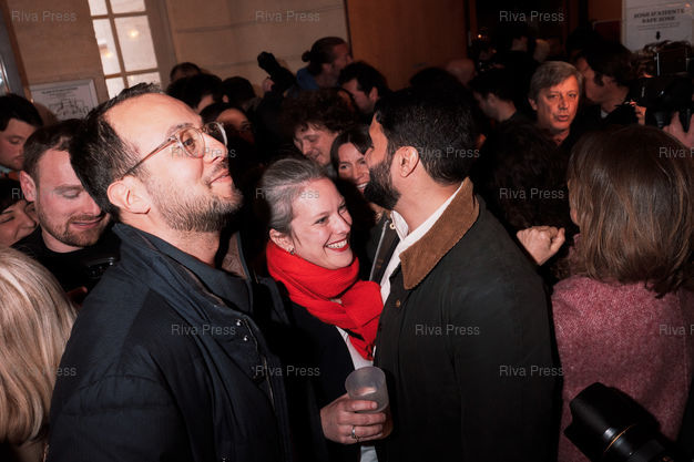 Légende : Lucie Castets lors de la victoire d'Emmanuel Gregoire, le candidat socialiste à la tête de l'union de la gauche pour les municipales de Paris, remporte l'election face a son opposante Rachida Dati (droite-centre) le 22 mars 2026. Paris, 22 mars 2026. Teo Manisier / Riva Press /// Lucie Castets at the victory celebration for Emmanuel Gregoire, the Socialist candidate leading the left-wing coalition in the Paris municipal elections, who defeated his opponent Rachida Dati (center-right) on March 22, 2026. Paris, March 22, 2026. Teo Manisier / Riva Press