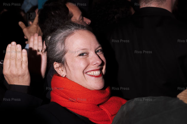 Légende : Lucie Castets lors de la victoire d'Emmanuel Gregoire, le candidat socialiste à la tête de l'union de la gauche pour les municipales de Paris, remporte l'election face a son opposante Rachida Dati (droite-centre) le 22 mars 2026. Paris, 22 mars 2026. Teo Manisier / Riva Press /// Lucie Castets at the victory celebration for Emmanuel Gregoire, the Socialist candidate leading the left-wing coalition in the Paris municipal elections, who defeated his opponent Rachida Dati (center-right) on March 22, 2026. Paris, March 22, 2026. Teo Manisier / Riva Press