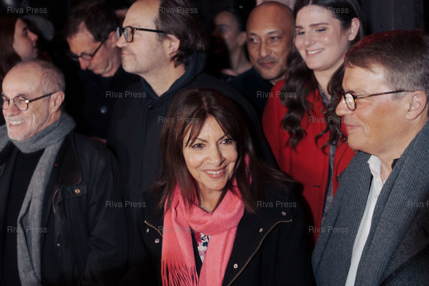 Légende : La desormais ancienne maire de Paris Anne Hidalgo accueille son successeur Emmanuel Gregoire, apres sa victoire aux elections municipales de Paris face a son opposante Rachida Dati (droite-centre) le 22 mars 2026. Paris, 22 mars 2026. Teo Manisier / Riva Press /// Anne Hidalgo, the now former mayor of Paris, welcomes her successor, Emmanuel Grégoire, following his victory in the Paris municipal elections over his opponent Rachida Dati (center-right) on March 22, 2026. Paris, March 22, 2026. Teo Manisier / Riva Press