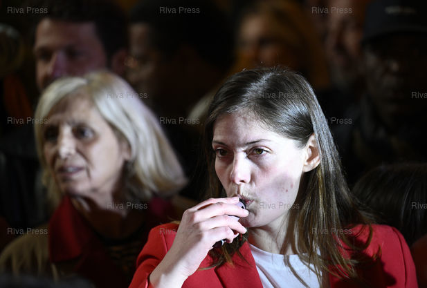 Légende : Emmanuel Grégoire, élu nouveau maire de Paris, célèbre sa victoire. Emma Rafowicz, députée européenne /// Emmanuel Grégoire, elected the new mayor of Paris, celebrates his victory. Emma Rafowicz, MEP - Paris - 22/03/2026 - Photo © Lionel Préau +33 (0)6 68 12 83 77