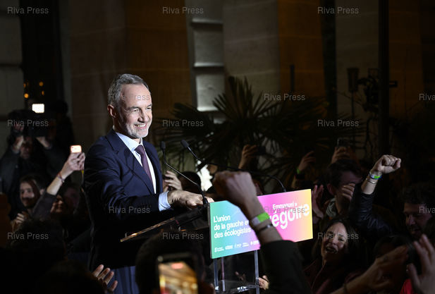 Légende : Emmanuel Grégoire, élu nouveau maire de Paris, célèbre sa victoire /// Emmanuel Grégoire, elected the new mayor of Paris, celebrates his victory - Paris - 22/03/2026 - Photo © Lionel Préau +33 (0)6 68 12 83 77