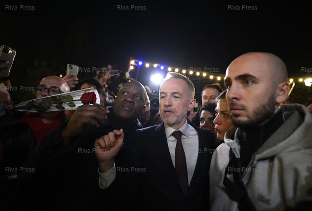 Légende : Emmanuel Grégoire, élu nouveau maire de Paris, célèbre sa victoire /// Emmanuel Grégoire, elected the new mayor of Paris, celebrates his victory - Paris - 22/03/2026 - Photo © Lionel Préau +33 (0)6 68 12 83 77