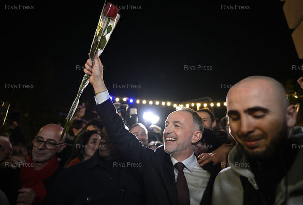 Légende : Emmanuel Grégoire, élu nouveau maire de Paris, célèbre sa victoire /// Emmanuel Grégoire, elected the new mayor of Paris, celebrates his victory - Paris - 22/03/2026 - Photo © Lionel Préau +33 (0)6 68 12 83 77