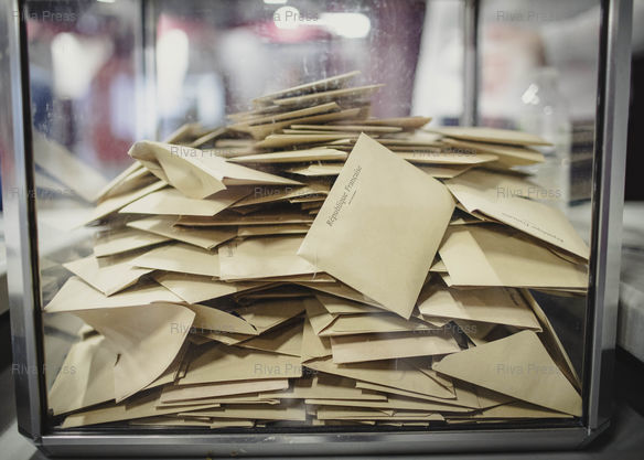 Légende : Toulouse, le 22 mars 2026 - Une urne électorale dans un bureau de vote à Toulouse le jour du second tour des élections municipales. PHOTO: Vincent NGUYEN / Riva Press