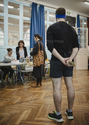 Légende : Toulouse, le 22 mars 2026 - Des électeurs votent au bureau de vote de l'école Fabre dans le quartier des Carmes à Toulouse le jour du second tour des élections municipales. PHOTO: Vincent NGUYEN / Riva Press