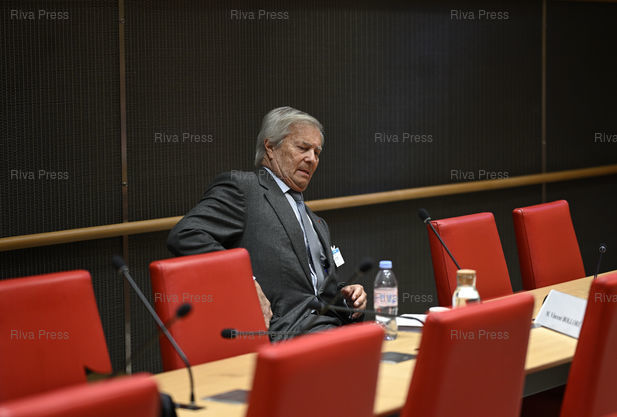 Légende : Vincent Bolloré est auditionné par la Commission d'enquête parlementaire sur l'audiovisuel public à l'Assemblée nationale /// Vincent Bolloré is being questioned by the Parliamentary Commission of Inquiry on Public Broadcasting at the National Assembly - Paris - 24/03/2026 - Photo © Lionel Préau +33 (0)6 68 12 83 77
