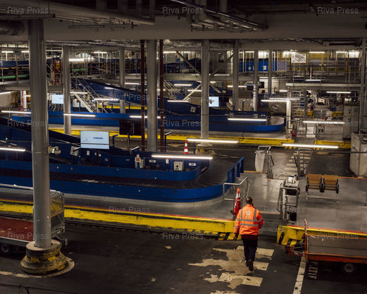 Légende : Espace de tri des bagages du terminal 3 de l'aéroport d'Orly, le 25 février 2026. © Lucien Lung / Riva Press *** Baggage sorting area at Terminal 3 of Orly Airport, February 25, 2026. © Lucien Lung / Riva Press