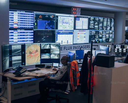 Légende : Pôle 'Flux Passagers' de l'APOC (Airport Operation Center) de l'aéroport d'Orly, le 25 février 2026. © Lucien Lung / Riva Press *** Passenger Flow Hub of the APOC (Airport Operations Center) at Orly Airport, February 25, 2026. © Lucien Lung / Riva Press
