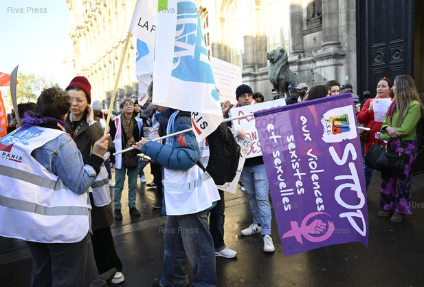 Légende : Des travailleurs du périscolaire se rassemblent devant l'Hôtel de Ville de Paris pour réclamer des moyens pour la protection des enfants, à l'occasion d'un Conseil de Paris extraordinaire dédié au périscolaire, alors que la mairie de Paris a été éclaboussée par des affaires de violences sexuelles /// After-school workers gathered in front of Paris City Hall to demand resources for child protection, during an extraordinary Paris Council meeting dedicated to after-school programs, at a time when the Paris City Hall has been embroiled in sexual violence cases - Paris - 14/04/2026 - Photo © Lionel Préau +33 (0)6 68 12 83 77