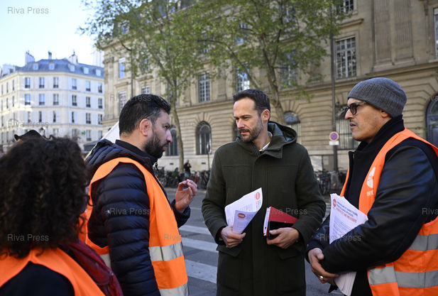 Légende : Des travailleurs du périscolaire se rassemblent devant l'Hôtel de Ville de Paris pour réclamer des moyens pour la protection des enfants, à l'occasion d'un Conseil de Paris extraordinaire dédié au périscolaire, alors que la mairie de Paris a été éclaboussée par des affaires de violences sexuelles. David Belliard, maire du 11e arrondissement /// After-school workers gathered in front of Paris City Hall to demand resources for child protection, during an extraordinary Paris Council meeting dedicated to after-school programs, at a time when the Paris City Hall has been embroiled in sexual violence cases. David Belliard, mayor of the 11th arrondissement - Paris - 14/04/2026 - Photo © Lionel Préau +33 (0)6 68 12 83 77