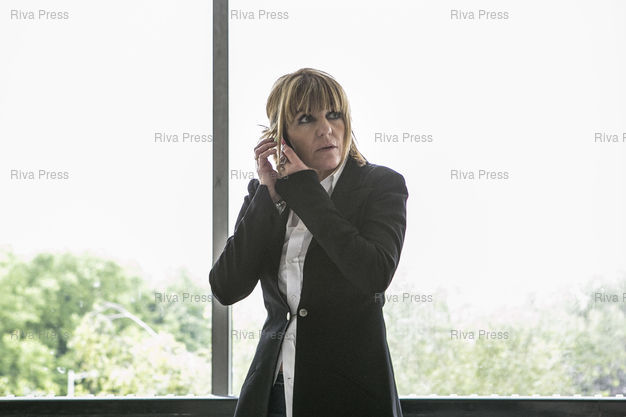Légende : Nanterre, le 1er juillet 2014 - Laurence Pieau, redactrice en chef de Closer. Proces des photos de Julie Gayet parues dans Closer au tribunal de Nanterre. PHOTO: Vincent NGUYEN / Riva Press