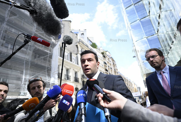 Légende : Jordan Bardella, président du Rassemblement National, s'exprime avant un déjeuner avec le comité exécutif du Medef. En présence de François Durvye, conseiller spécial de Jordan Bardella /// Jordan Bardella, president of the Rassemblement National far right party, speaks before a lunch with the executive committee of the Medef (French Business Confederation). With François Durvye, special advisor of Jordan Bardella - Paris - 20/04/2026 - Photo © Lionel Préau +33 (0)6 68 12 83 77