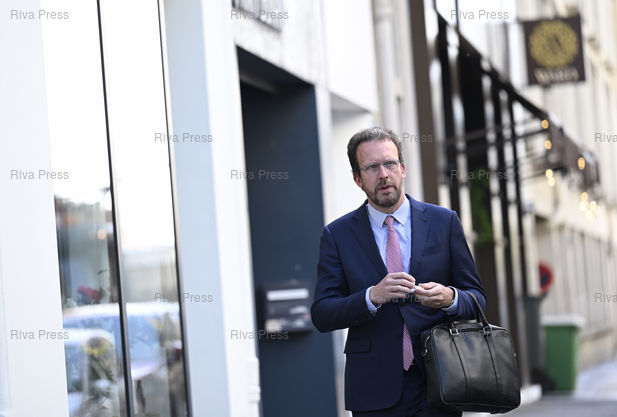 Légende : François Durvye, conseiller spécial de Jordan Bardella, après un déjeuner du Rassemblement National avec le comité exécutif du Medef /// François Durvye, special advisor to Jordan Bardella, after a lunch of the Rassemblement National far right party with the Medef executive committee - Paris - 20/04/2026 - Photo © Lionel Préau +33 (0)6 68 12 83 77