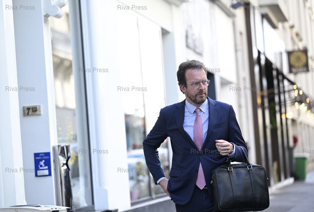 Légende : François Durvye, conseiller spécial de Jordan Bardella, après un déjeuner du Rassemblement National avec le comité exécutif du Medef /// François Durvye, special advisor to Jordan Bardella, after a lunch of the Rassemblement National far right party with the Medef executive committee - Paris - 20/04/2026 - Photo © Lionel Préau +33 (0)6 68 12 83 77