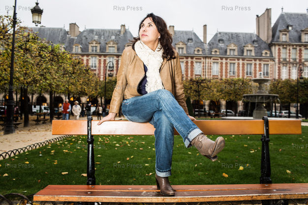 Légende : Rachel Kahn pose sur la place des Vosges. Paris, FRANCE-26/10/2012