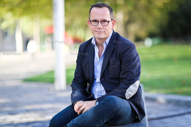 Légende : Thomas Legrand pose dans les jardins de la Villette. Paris, FRANCE-13/09/2012