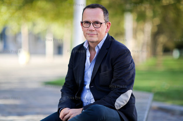 Légende : Thomas Legrand pose dans les jardins de la Villette. Paris, FRANCE-13/09/2012