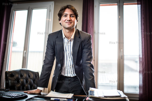 Légende : Barnabe Weiser pose dans ses bureaux de la societe de Guard Industrie. Montreuil, FRANCE-18/01/2013
