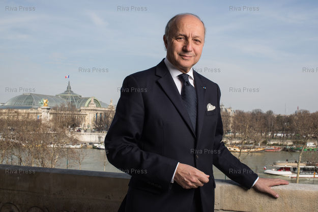 Légende : Laurent Fabius pose au Ministere des Affaires Etrangeres. Paris, FRANCE-25/03/2013