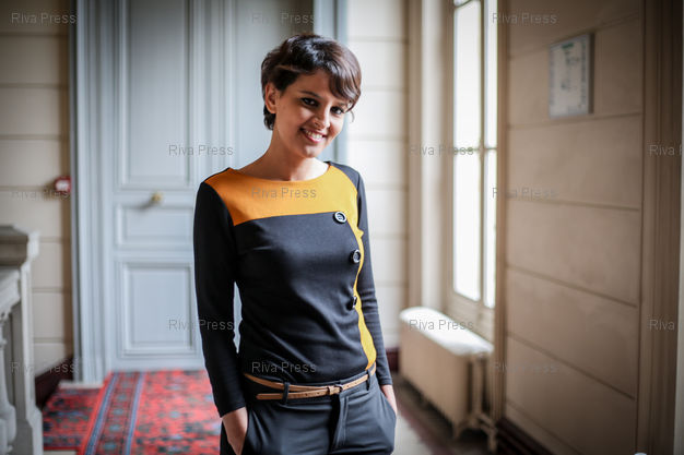 Légende : Najat Vallaud-Belkacem, Ministre des Droits des femmes, Porte-parole du Gouvernement, pose dans son ministere. Paris, FRANCE-07/07/2013