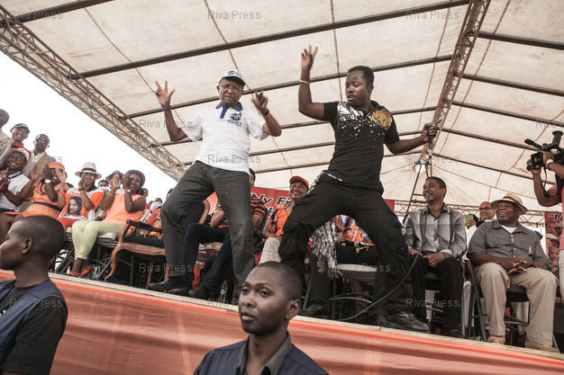 MADAGASCAR, Antananarivo : Presidential candidate Hery Rajaonarimampianina (L) during his last rally in Antananarivo on December 18, 2013 ahead of the upcoming presidential election on December 20. PHOTO : RIJASOLO / RIVA PRESS