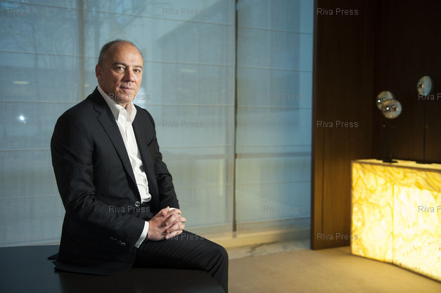 Légende : Le PDG d'Orange Stephane Richard pose au siege de l'entreprise a Paris. Le 16/12/2013. /// Orange Ceo Stephane Richard poses at the headquarter of the group in Paris. On 16/12/2013.