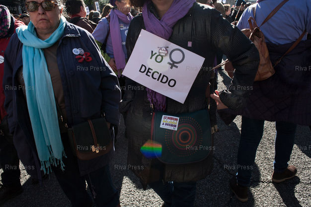 012-02-2014. Madrid Spain. During a demonstration against the reform of the country's abortion law proposed by the conservative Spanish government. The protest was organized by pro-choice and women's groups to claim their opposition to the government's plan to implement major restrictions on abortions.