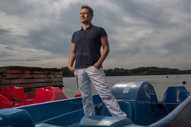 Légende : Jean-Paul Roland, directeur du festival des Eurokeennes de Belfort pose sur l'emplacement du festival. Belfort, FRANCE-14/06/2013