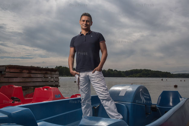 Légende : Jean-Paul Roland, directeur du festival des Eurokeennes de Belfort pose sur l'emplacement du festival. Belfort, FRANCE-14/06/2013