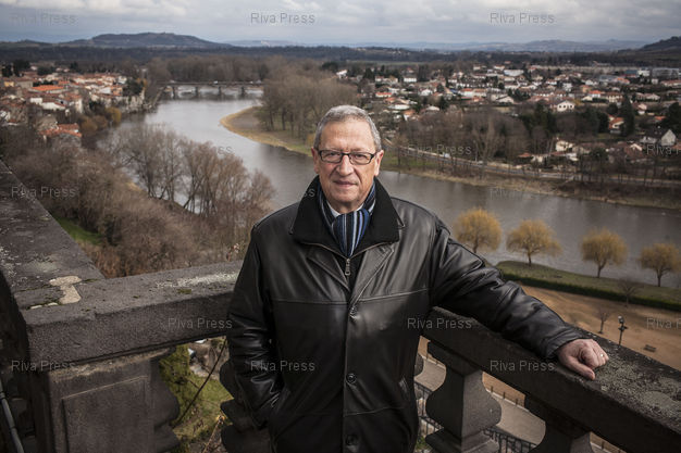 Légende : Pont-du-Chateau (Puy-de-Dome), le 19 fevrier 2010 - Le president sortant du Conseil regional d'Auvergne, le socialiste Rene Souchon, en campagne electorale dans le cadre des elections regionales de mars 2010. Ici sur le balcon de la mairie de Pont-du-Chateau, surplombant l'Allier, en peripherie de Clermont Ferrand. PHOTO: Vincent NGUYEN / Riva Press