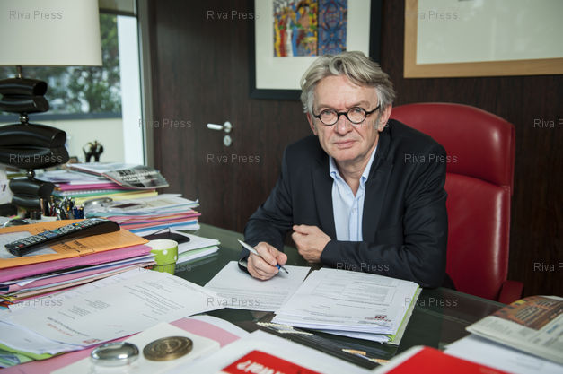 Légende : Jean-Caude Mailly, secretaire general du syndicat Force Ouvriere, pose dans son bureau au siege de l'organisation a Paris. Le 04/07/2014. /// Jean-Claude Mailly, French general secretary of Force Ouvriere (FO), in his office in Paris. /// PHOTO Vincent Boisot/Riva Press