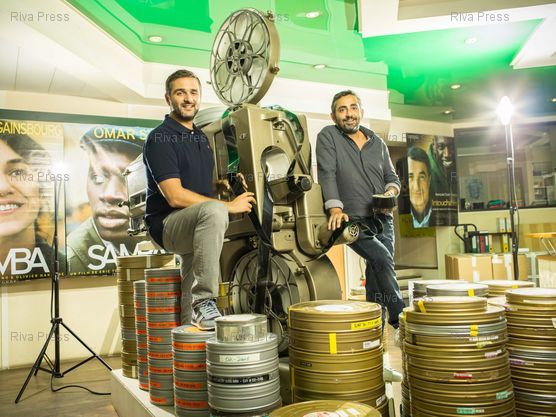 Légende : Eric Toledano et Olivier Nakache posent au siege de la societe ARANE. Clichy, FRANCE-19/09/2014