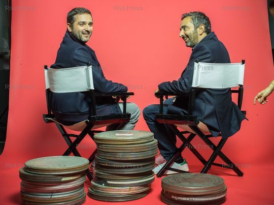Légende : Eric Toledano et Olivier Nakache posent au siege de la societe ARANE. Clichy, FRANCE-19/09/2014