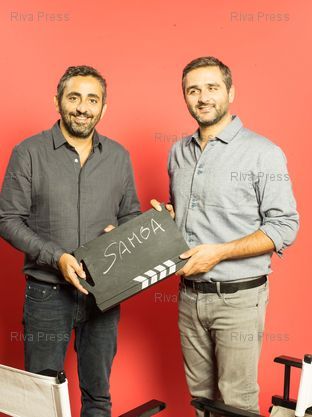Légende : Eric Toledano et Olivier Nakache posent au siege de la societe ARANE. Clichy, FRANCE-19/09/2014