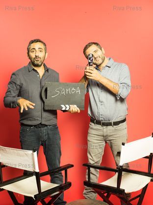 Légende : Eric Toledano et Olivier Nakache posent au siege de la societe ARANE. Clichy, FRANCE-19/09/2014