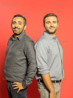 Légende : Eric Toledano et Olivier Nakache posent au siege de la societe ARANE. Clichy, FRANCE-19/09/2014