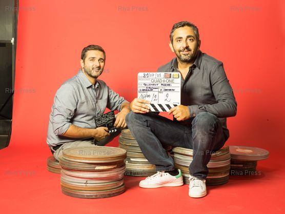 Légende : Eric Toledano et Olivier Nakache posent au siege de la societe ARANE. Clichy, FRANCE-19/09/2014