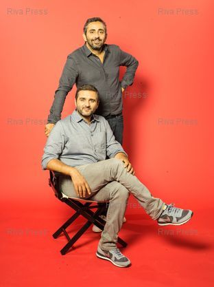 Légende : Eric Toledano et Olivier Nakache posent au siege de la societe ARANE. Clichy, FRANCE-19/09/2014