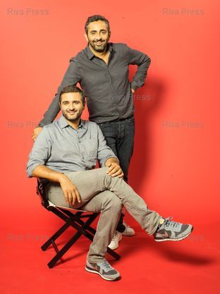 Légende : Eric Toledano et Olivier Nakache posent au siege de la societe ARANE. Clichy, FRANCE-19/09/2014