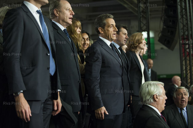 Légende : Reunion publique de Nicolas Sarkozy au parc des expositions de la porte de Versailles a Paris dans le cadre de la campagne pour la presidence de l'UMP. Le 07/11/2014 /// Public meeting in Paris of former French president Nicolas Sarkozy, candidate for the presidency of France's right-wing main opposition UMP party. 07/11/2014. /// PHOTO Vincent Boisot/Riva Press