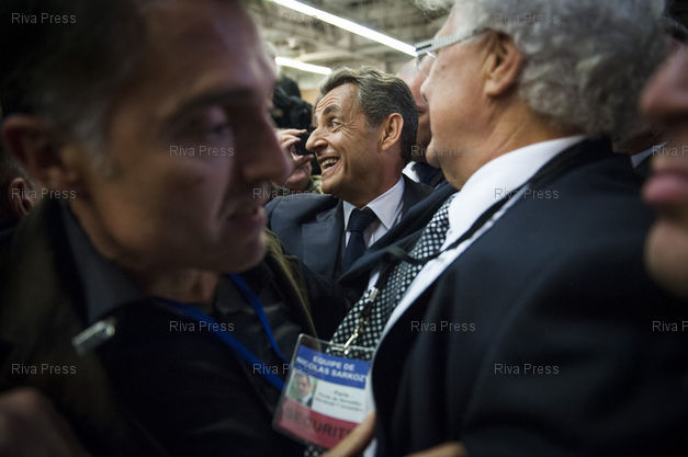 Légende : Reunion publique de Nicolas Sarkozy au parc des expositions de la porte de Versailles a Paris dans le cadre de la campagne pour la presidence de l'UMP. Le 07/11/2014 /// Public meeting in Paris of former French president Nicolas Sarkozy, candidate for the presidency of France's right-wing main opposition UMP party. 07/11/2014. /// PHOTO Vincent Boisot/Riva Press