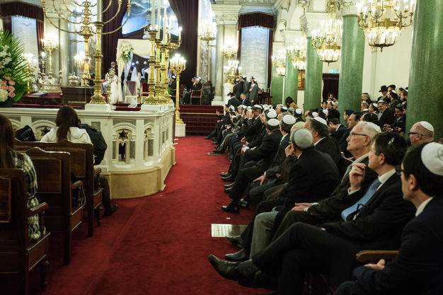 Légende : La Synagogue Buffault lors d'un mariage. Paris, FRANCE-08/03/2016