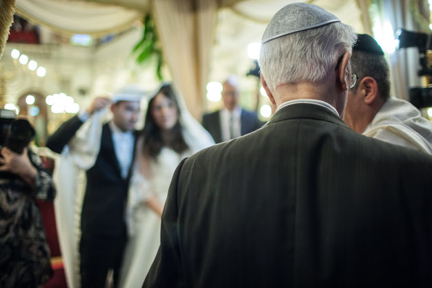 Légende : La Synagogue Buffault lors d'un mariage. Paris, FRANCE-08/03/2016