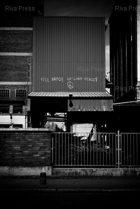 Légende : 07/04/2009 - Strasbourg, FRANCE - Slogans anti-OTAN a l'occasion du sommet de l'OTAN a Strasbourg. Photo : Rijasolo/Riva Press.