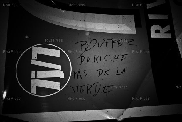 Légende : 07/04/2009 - Strasbourg, FRANCE - Slogans anti-OTAN a l'occasion du sommet de l'OTAN a Strasbourg. Photo : Rijasolo/Riva Press.