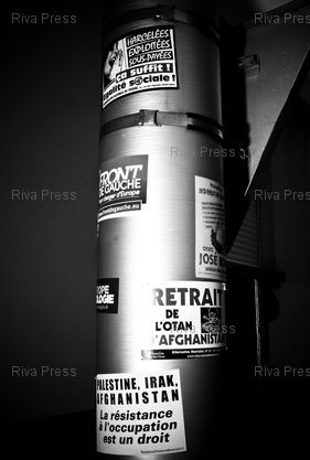 Légende : 07/04/2009 - Strasbourg, FRANCE - Slogans anti-OTAN a l'occasion du sommet de l'OTAN a Strasbourg. Photo : Rijasolo/Riva Press.
