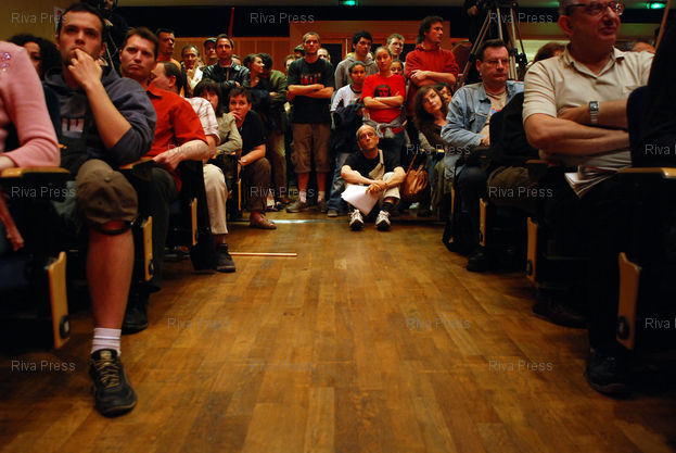 Légende : 18/04/2007 - Montreuil, France - Lors d'un meeting d'Olivier Besancenot à la Mutualité dans le cadre de sa campagne présidentielle 2007