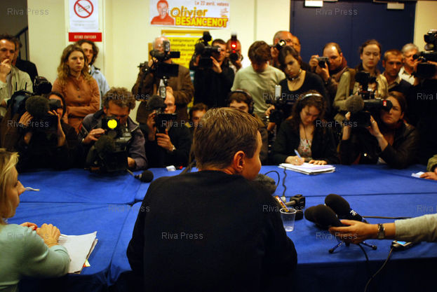 Légende : 18/04/2007 - Montreuil, France - Conférence de Presse d'Olivier Besancenot, candidat LCR à la présidentielle 2007.